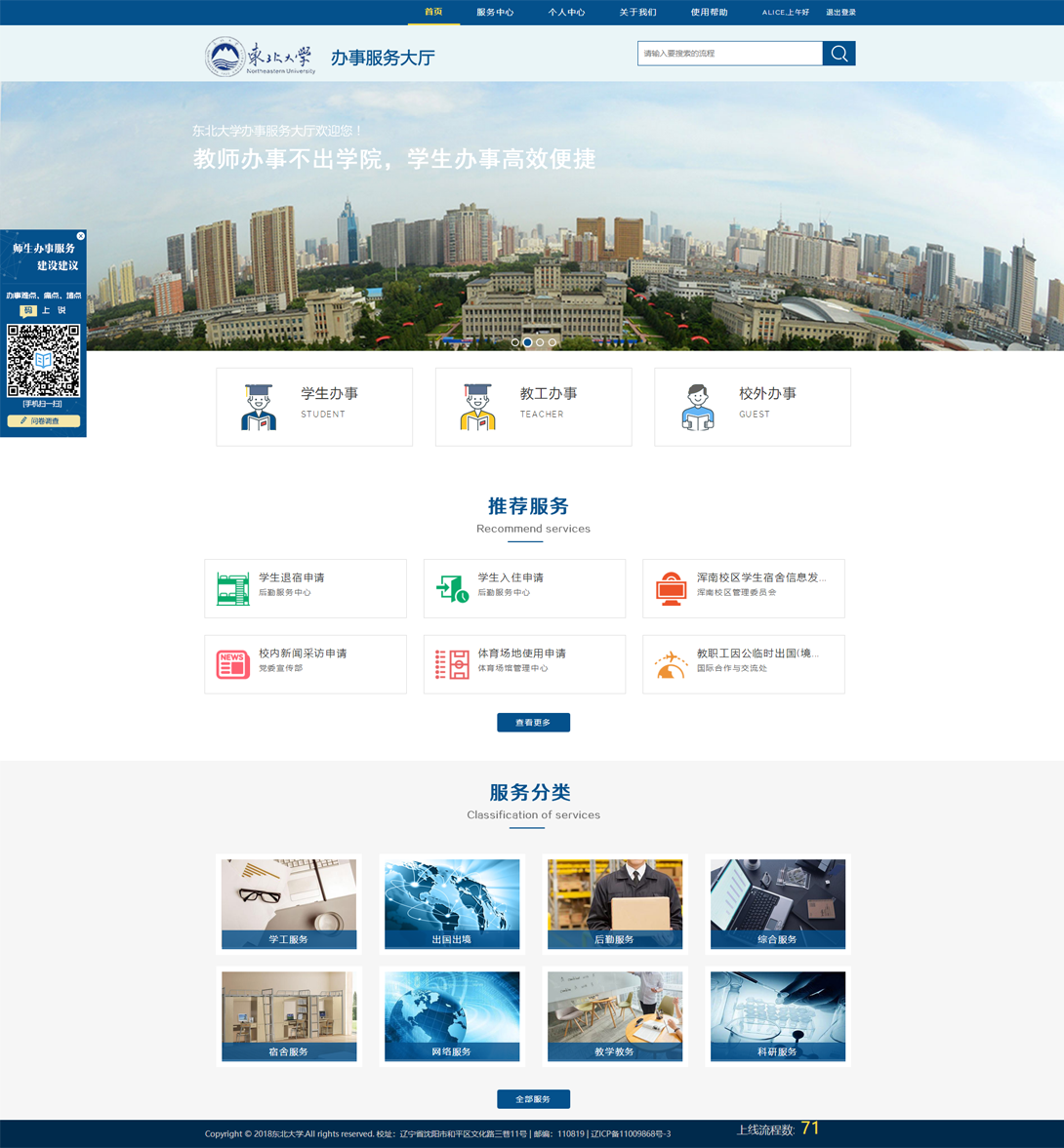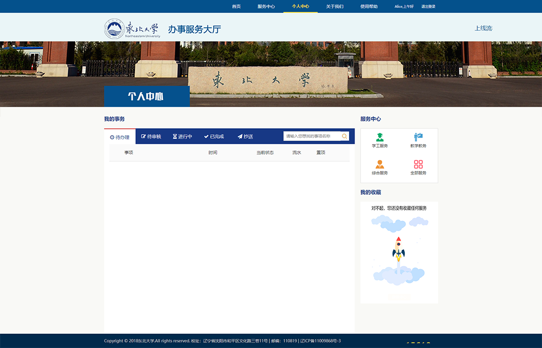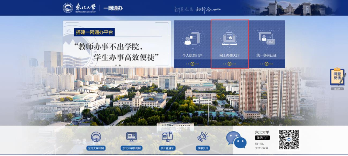 同时,也可以通过东北大学一网通办进入网上办事服务大厅: