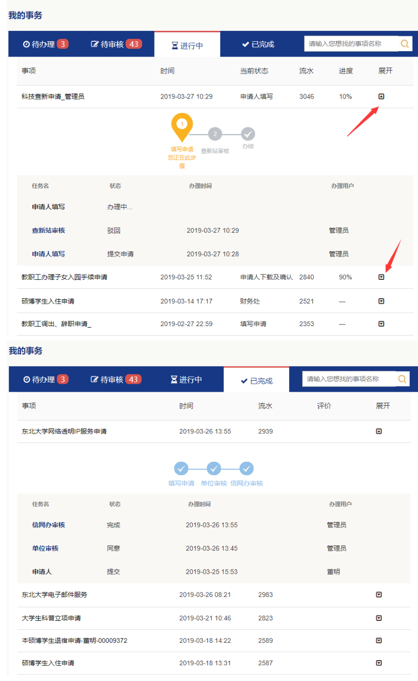 已完成:主要是指您个人发起或您已经审核的已办结事项,您可以在此